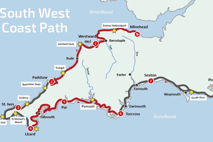 The trail winds along rugged cliffs, turquoise coves, and wildflower‑lined paths, offering sweeping views that change with every turn. From the serpentine rocks at Kynance Cove to the lighthouse at Lizard Point—the most southerly tip of mainland Britain—this stretch of the path is rich in wildlife, history, and coastal charm. Whether you’re after a gentle stroll or a full‑day adventure, the Lizard’s coastline rewards every step with breathtaking beauty and a deep sense of tranquillity.